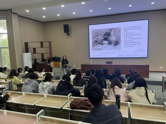 吴秀丽教授的《素描基础与教学》示范观摩课,主要内容是在课程结束之际对学生“作业点评”。吴老师的课程设计,充分显示了“学生中心”的专业认证理念。第一步,由三位学生代表先后登台作PPT演示,她们从从形准、明暗、体感、构图的四个维度,点评本班同学的“陶罐组合”素描作品的优点与不足。再由其他同学自由发言,提出如何改进不足的个人见解。第二步,由吴老师结合中国陶瓷文化艺术的介绍,进一步从民族文化的精神内核上与绘画技能结合的层面,对所展示学生作品的不足提出进一步优化的点评建议。第三步要求每位同学拍摄作业输入AI——“豆包”,提示“豆包”进行优缺点评价,在此基础上就作品不足之处的修改充分调动主观能动性与“豆包”进行对话式研究探讨。结合 AI 反馈辅助教学,最终实现学生在文化素养、艺术技能、AI 应用以及探讨性学习上的同步提升。